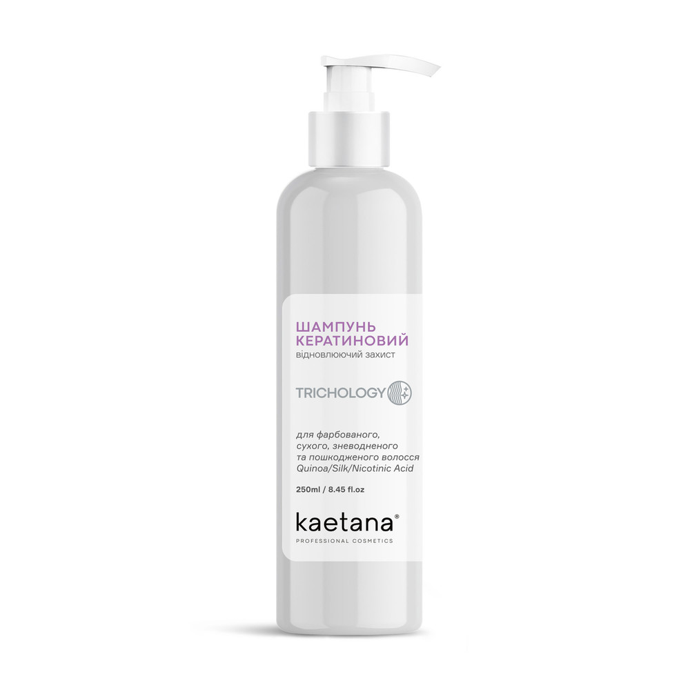 Шампунь для фарбованого, пошкодженого, сухого, зневодненого, ламкого волосся Kaetana "Кератиновий", 250 мл