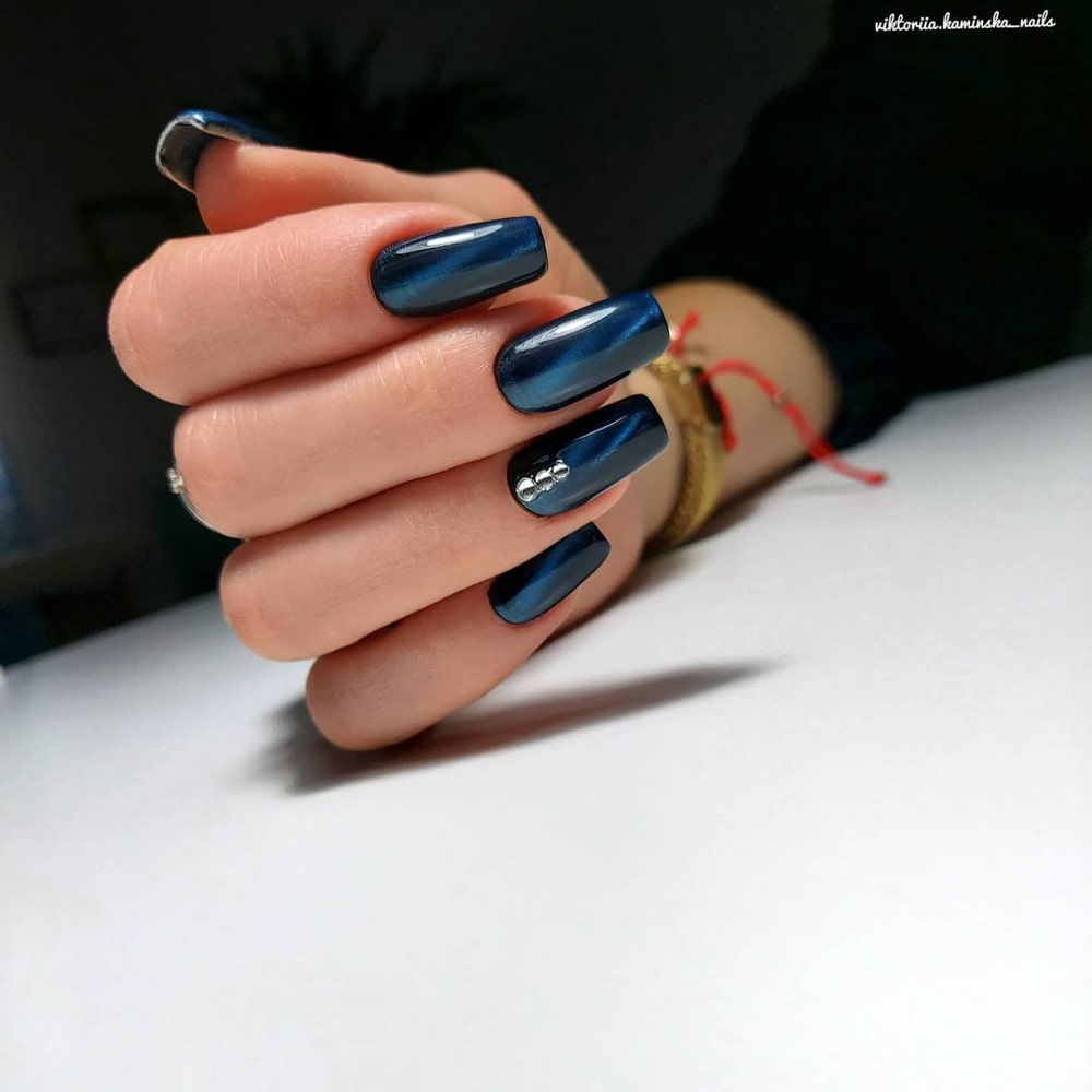Глибину та соковитість кольору неможливо порівняти з жодними іншими видами прикрас на нігтях. Особливо популярними стали темний ялиновий, гіпнотичний гренадин і сапфіровий колір. Вони додадуть манікюру вишуканої глибини та 3D-об’єму.