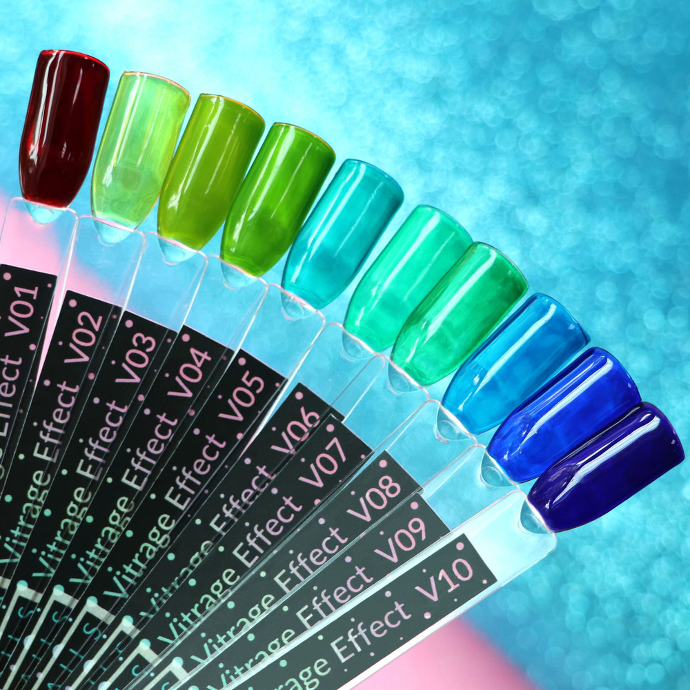 Вони дозволяють створювати розкішні об’ємні композиції з ідеальною поверхнею та особливою глибиною. Завдяки своїй консистенції та фактурі, вітражні гель-лаки успішно використовуються у поєднанні з різними матеріалами та покриттями: