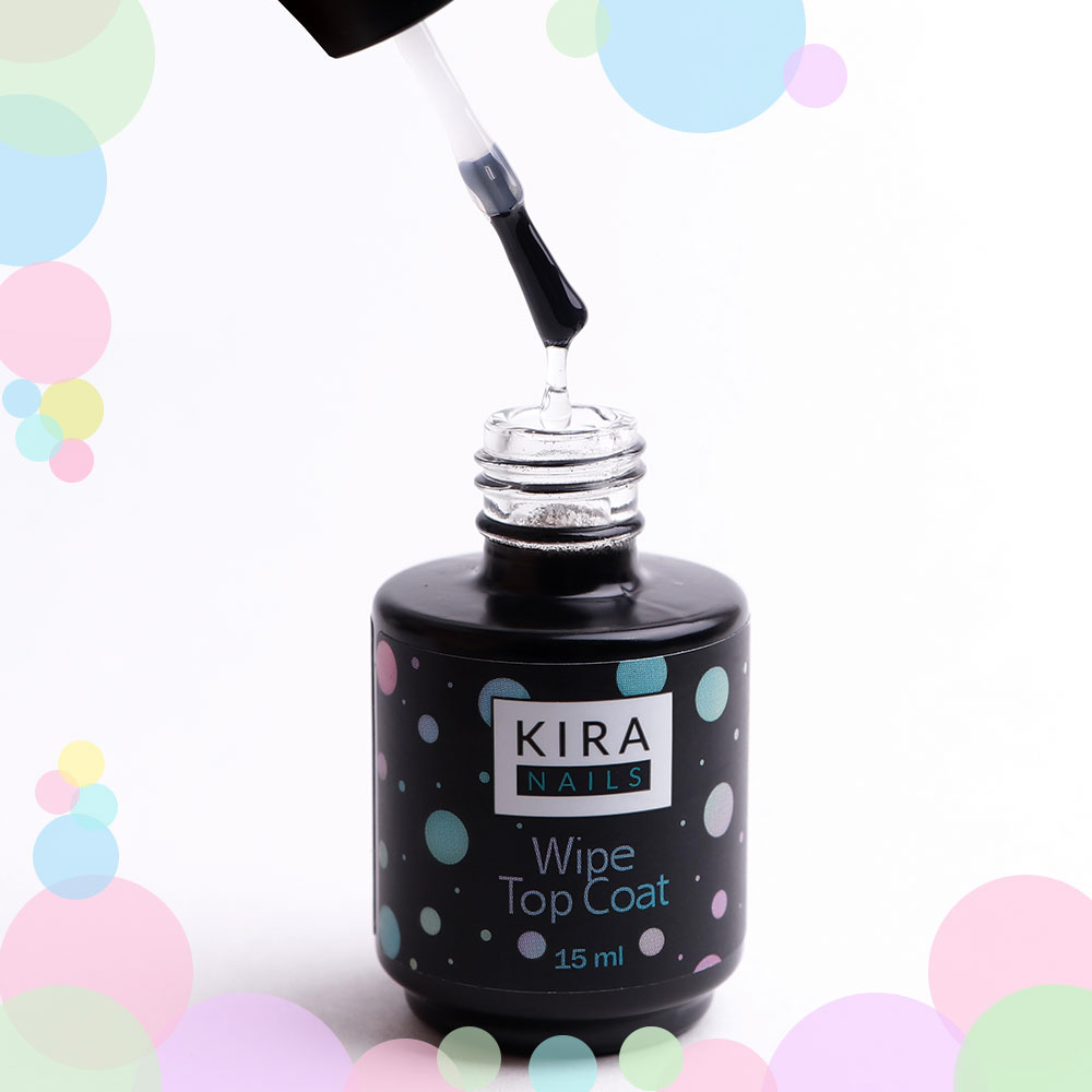 Kira Nails Wipe Top Coat - закріплювач для гель-лаку з липким шаром, 15 мл