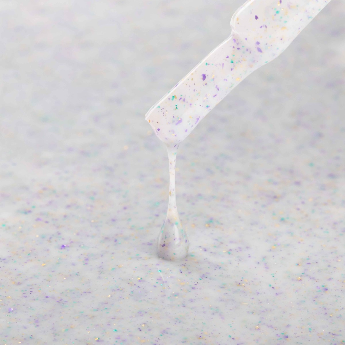 Колір 01 — витончений молочно-блакитний із вкрапленням різноманітних частинок, що створюють на нігтях приголомшливі візуальні ефекти. База має середню консистенцію і здатність до самовирівнювання, демонструє хорошу покриваність. При дотриманні правильної технології нанесення основа досить міцна, стійка до сколів.