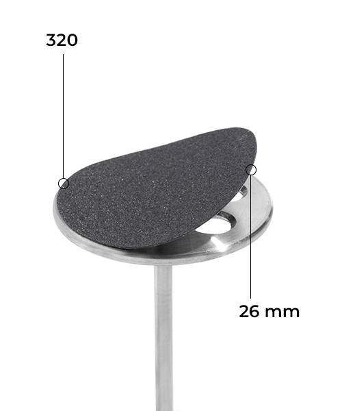 Змінні файли виготовлені із міцного водовідштовхувального матеріалу, що не втрачає свої експлуатаційні характеристики до кінця всього робочого процесу. Файл легко кріпиться на плоску основу металевого пододиска і також просто забирається по завершенню педикюру. Абразивність 320 гріт стане ідеальним вибором для фінального делікатного шліфування шкіри та стоп.
