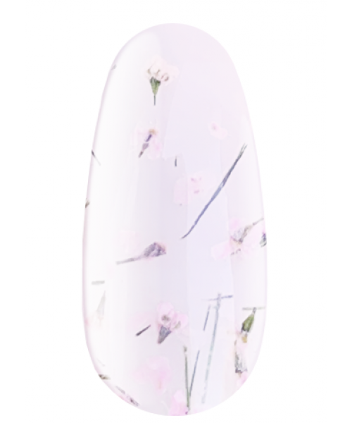Flower gel – гель для нігтьового дизайну з ніжним сухоцвітом. Це надзвичайно красивий і неймовірно зручний в роботі матеріал, призначений для легкого виконання квіткового дизайну. Застосовується самостійно або в поєднанні з кольоровою гель-лаковою підкладкою. Проявляє легкий акваріумний ефект. Підходить для натуральних і штучних нігтів. Може використовуватися в якості моделюючого гелю для викладки вільного краю нігтя. Має в міру щільну консистенцію, зручно і рівномірно розподіляється по нігтьовій пластині. З липким шаром.