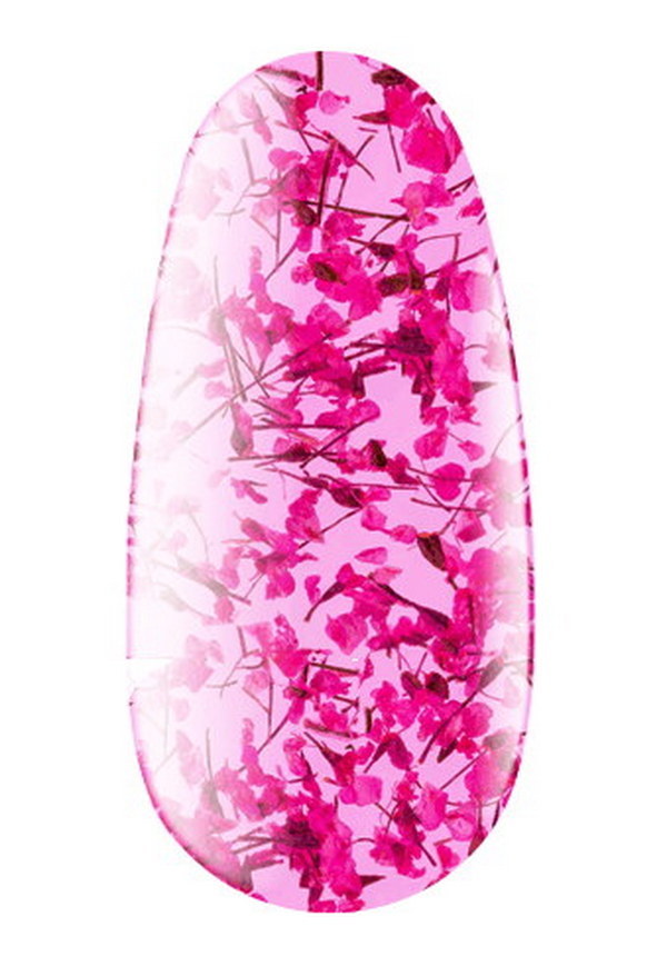 Колір №07 — квітковий ніжно-рожевий з додаванням натуральних сухоцвітів, що надають особливих романтичних акцентів. Продукт має середню жорсткість та в міру густу консистенцію. З ним зручно працювати навіть початківцю. Flower gel можна застосовувати для моделювання, корекції та зміцнення нігтів.