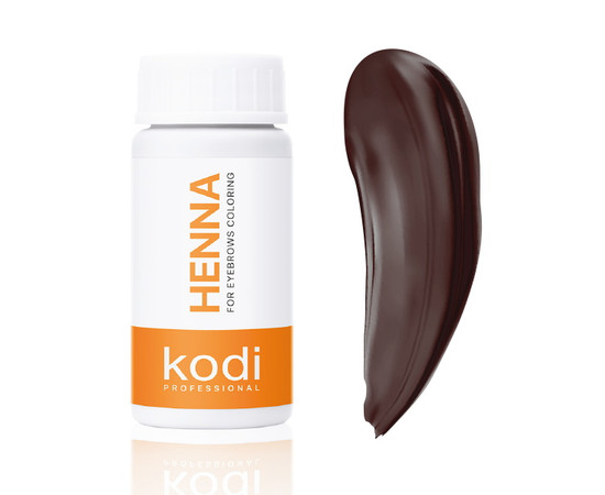 Фарбування брів хною – найпростіший і найшвидший спосіб мати акуратні брови потрібної форми та кольору. На відміну від інших процедур, фарбування брів хною не має на увазі проникаючого механічного впливу і є повністю безболісним, а головне – безпечним. Якісна хна не викликає алергічних реакцій, підходить для чутливої шкіри, запобігає подразненню. Крім іншого, хна для фарбування брів KODI PROFESSIONAL (темний шоколад) має дію, що доглядає - зміцнює і робить волоски більш щільними. Фарбування брів хною підходить всім жінкам, у тому числі вагітним та тим, хто годує. Після проведення процедури фарбування хною KODI PROFESSIONAL брови набувають змодельованої в процесі фарбування форми, акуратний, а головне природний вигляд. Колір зберігається на шкірі протягом 5-14 днів, на волосинках – до 6 тижнів.