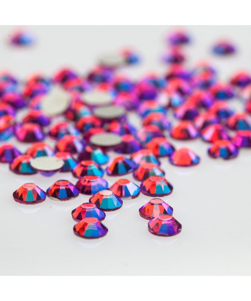 Кристали у відтінку “Fucsia AB” завдяки яскравому і вираженому відтінку добре підходять для акцентування окремих нігтів і створення візерунків. Вони виготовлені зі спеціального скла, мають фольговану основу і алмазну огранку, що надає їм чудові світловідбиваючі властивості. Спосіб кріплення залежить від матеріалів, які використовуються при покритті.