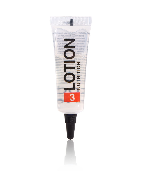 Лосьйон №3 - склад, який наноситься на фінальному етапі ламінування під час відділення волосків від бігуді. Він покликаний закріпити результат, запечатати кутикулу, зволожити, наситити та відновити вії після всіх процедур. Склад також посилює бар'єрну функцію, захищаючи волоски від негативного впливу навколишнього середовища.