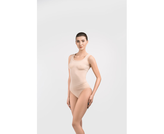 Представлена модель майки має широкі бретелі та глибокий напівкруглий виріз, за рахунок ідеального прилягання до тіла забезпечує ефект другої шкіри. Відсутність різаних країв та грубих швів ефективно попереджає будь-який дискомфорт. Тканина, з якої виготовлено виріб, дуже м'яка та приємна до шкіри, добре пропускає повітря та не деформується.