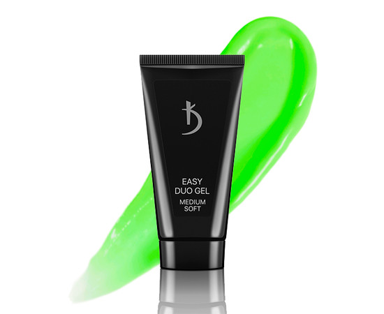 Дрібнозерниста структура полігеля легко і рівномірно розподіляється, а також відмінно тримає висоту при викладанні. Після полімеризації матеріал набуває додаткової міцності, але при цьому залишається податливим до пилу. Полігель можна використовувати для моделювання, ремонту, зміцнення та корекції нігтів. А сам процес нарощування можна робити не тільки на верхні та нижні форми, а й взагалі не використовуючи шаблонів. Серія Medium Soft більш пружний, але менш насичений пігментом матеріал ніж класична лінійка Easy Duo Gel. Колір Art 14 - освіжаючий напівпрозорий салатовий.