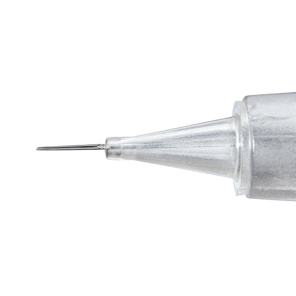 Голка модуль 1МR (PU) призначена для апарату "PLATINUM ULTRA", який дозволяє працювати з ультратонкими голками для виконання перманентного макіяжу з ювелірною точністю - найтонша волосина або контур. Завдяки мікроголці, шкіра піддається мінімальній травматичній дії, але якість виконаної процедури перманентного макіяжу залишається незмінно високою. Логічна функція контролю апарату "PLATINUM ULTRA" адаптує хід голки з урахуванням індивідуальних параметрів, підлаштовуючи силу проколу та введення пігменту. Оптимальний кут заточування забезпечує легке досягнення бажаного результату.