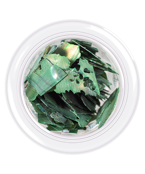 Shells style - це тонкі шматочки натурального перламутру різної форми та розміру. Ми забарвили їх за спеціальною технологією, щоб отримати незвичайні колірні рішення для манікюру. Черепашки можна ламати та викладати ними будь-які візерунки, можна застосовувати їх у тематичному акваріумному дизайні. На окрему увагу заслуговує палітра кольорів серії. Відтінок №08 — класичний перламутровий зелений.