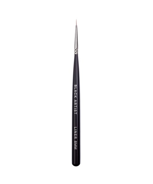 Практичні та функціональні пензлі професійної серії Black Artist стануть цінним придбанням для початківців і досвідчених майстрів, які працюють з розписом. Пружний та в міру жорсткий нейлоновий ворс, а також ергономічна дерев'яна ручка забезпечують легку роботу з різними декоративними текстурами при вирішенні будь-яких завдань в процесі розпису нігтів. Пензлик Liner 8mm використовується для розпису нігтів. Рекомендується для виконання тонких ліній, може застосовуватися при френч-дизайні, для виконання вензелів та інших дрібних елементів, де важливі точність і акуратність. Інструмент комплектується захисним ковпачком.