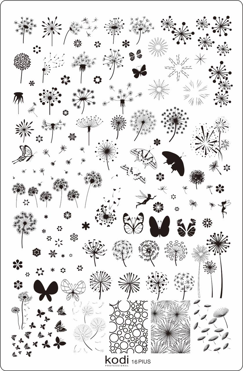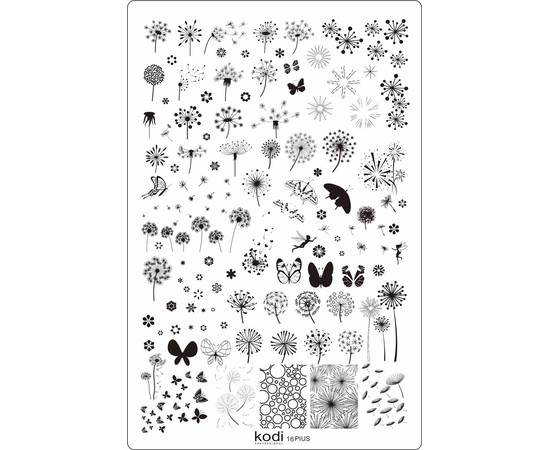 Популярний міжнародний бренд Kodi Professional постійно розширює асортимент товарів для стемпінг-дизайну, щоб вашу фантазію ніщо не обмежувало. Пластина для стемпінгу №16 є тонким листом металу з нанесеним на нього гравіюванням у вигляді мінімалістичних малюнків кульбаби. Оптимальна глибина гравіювання робить перенесення малюнка більш чітким та акуратними, дозволяючи на 100% передати витонченість зображення.