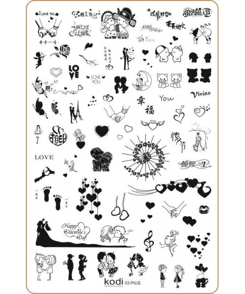 Пластина №03 з серії Plus size виконана з металу і містить велике різноманіття малюнків у любовній тематиці – все для створення оригінального романтичного нейл-арту. Ви можете використовувати один або відразу декілька елементів з пластини.