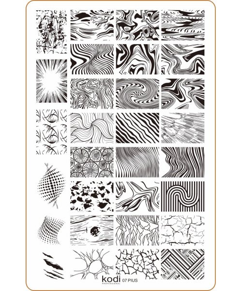 Пластина №07 з серії Plus size виконана з металу. Пластина призначена для створення дизайну з різними візерунками. На ваш вибір представлені як чіткі геометричні візерунки, так і візерунки з розводами, а також природні текстури.