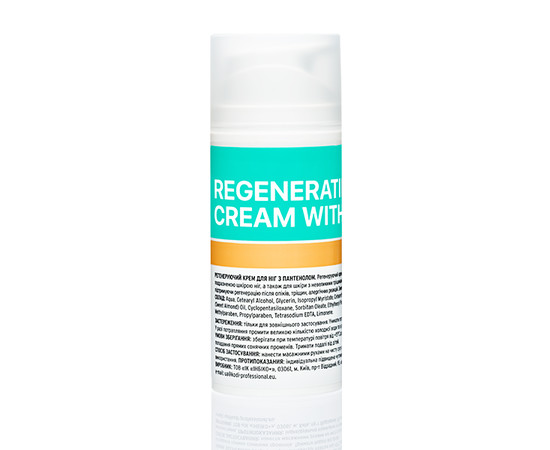 Регенеруючий крем для ніг із пантенолом, 100 мл. При регулярному застосуванні крем для ніг Regenerating foot cream with panthenolо забезпечує природне відновлення шкіри ніг, допомагає зберегти її еластичність, м'якість і гладкість. Компоненти, що входять до складу крему, попереджають втрату вологи у шкірі, сприяють пом'якшенню та нормалізації водного балансу. Крем ефективний при таких поширених явищах, як сухість та огрубіння шкіри, за наявності мозолів, тріщин і пухирів, а також при різних подразненнях, наприклад, алергічних реакціях. З першого застосування крем зменшує відчуття втоми, дозволяє відчути легкість та свіжість. Провітамін D-пантенол є незамінним компонентом швидкої регенерації шкіри, оскільки виступає активним учасником регуляції обмінних процесів у шкірі. Чинить профілактичну дію, а також є ефективним захистом проти подразнень шкіри внаслідок впливу різних факторів. Гліцерин пом'якшує та зволожує, захищає шкіру від пересихання, заспокоює та забезпечує почуття комфорту. Мигдальна та виноградна олії, що містять антиоксиданти, незамінні для сухої шкіри, а також шкіри, яка часто піддається впливу сонячних променів – дані олії мають дуже гарну зволожуючу дію, служать надійним ліпідним бар'єром. Вітамін Е має виражені протизапальні властивості і незамінний для підтримки молодості шкіри, тому що уповільнює старіння її клітин. Спосіб застосування: нанести масажними рухами на чисту суху шкіру ніг. Підходить для щоденного використання. Склад: Aqua, CetearylAlcohol, Glycerin, IsopropylMyristate, Ceteareth-20, StearylAlcohol, VitisViniferaSeedOil, PrunusAmygdalusDulcis (SweetAlmond) Oil,