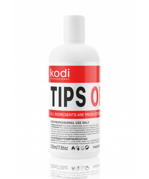Рідина Tips Off розроблена спеціально для швидкого, зручного і безпечного зняття гель-лакового покриття або штучних нігтів. У порівнянні з іншими засобами у цьому класі препаратів відрізняється м'якою дією. До складу включені інгредієнти, які пом'якшують дію агресивних речовин і доглядають за натуральною нігтьовою пластиною. Залежно від матеріалу покриття діапазон витримки засобу на нігтях становить 10-15 хвилин.