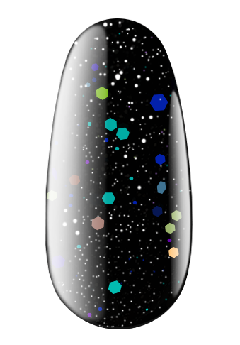 Крім того, топи з даної лінійки надають нігтьовому дизайну цікавих візуальних ефектів. Відтінок 08 — глянцевий прозорий топ із сріблястим шиммером з додаванням круглих голографічних частинок. У топах відсутня залишкова липкість, що скорочує часові витрати майстра та витрати на додаткові матеріали. Верхнє покриття має середню консистенцію, за рахунок якої рівномірно розподіляється пензлем і не розтікається. Не має в складі UF-фільтрів.