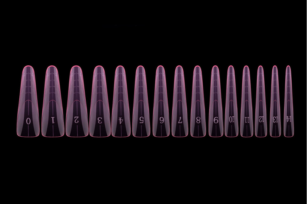 Верхні форми виготовлені з напівпрозорого матеріалу для того, щоб контролювати весь процес моделювання, а спеціальна розмітка з кількома варіантами довжини дозволяє досягти потрібної симетричності на кожному нігті. Форми мають оптимальну пружність, їх зняття після полімеризації з будь-яким нейл-матеріалом не викликає складнощів. Не вимагають обпилювання лінії посмішки. Форми допомагають скоротити час роботи вдвічі, полегшуючи процес створення ідеального французького манікюру не лише початківцям, а й досвідченим майстрам. Для зручності використання ми додали збільшену розмітку розмірів на верхніх формах.