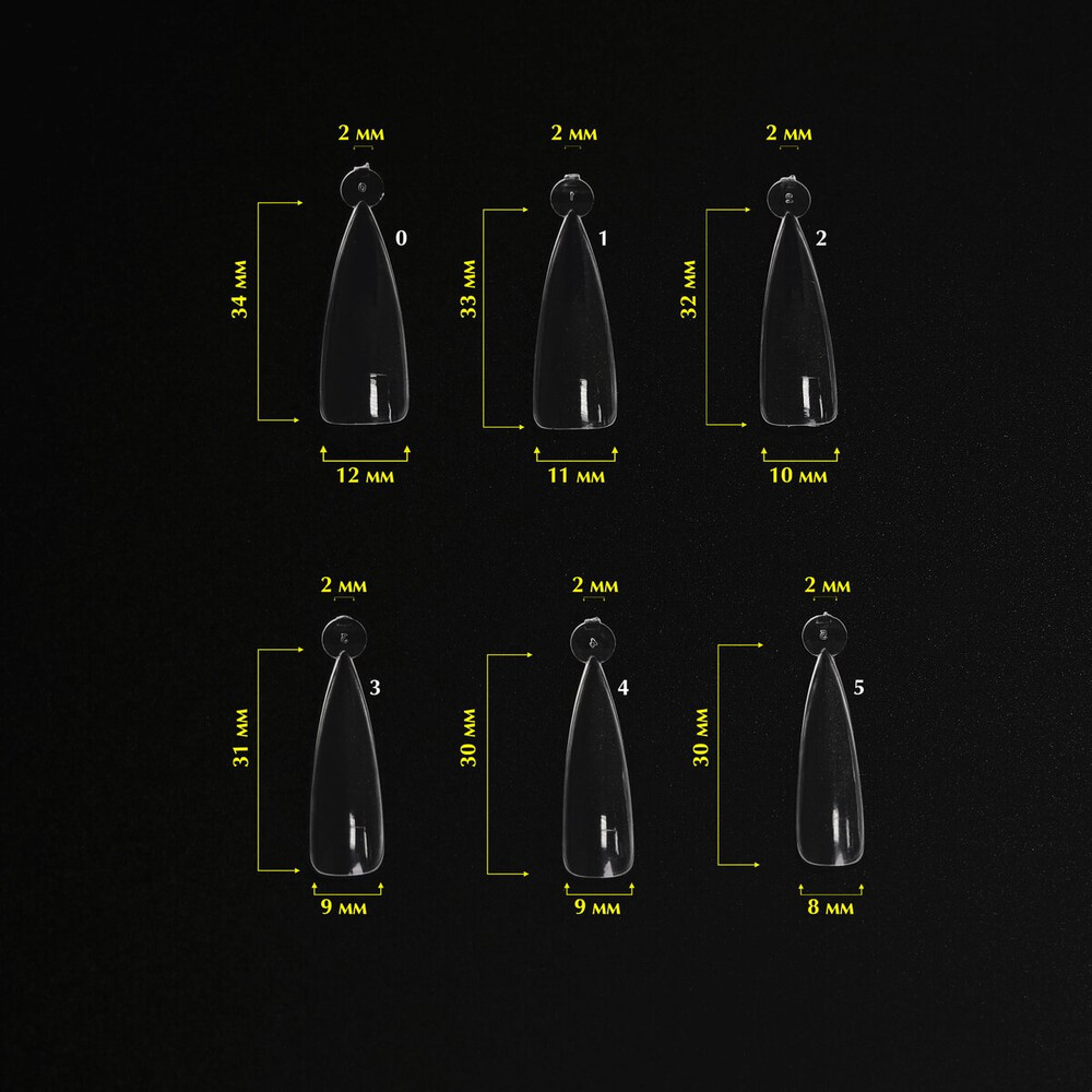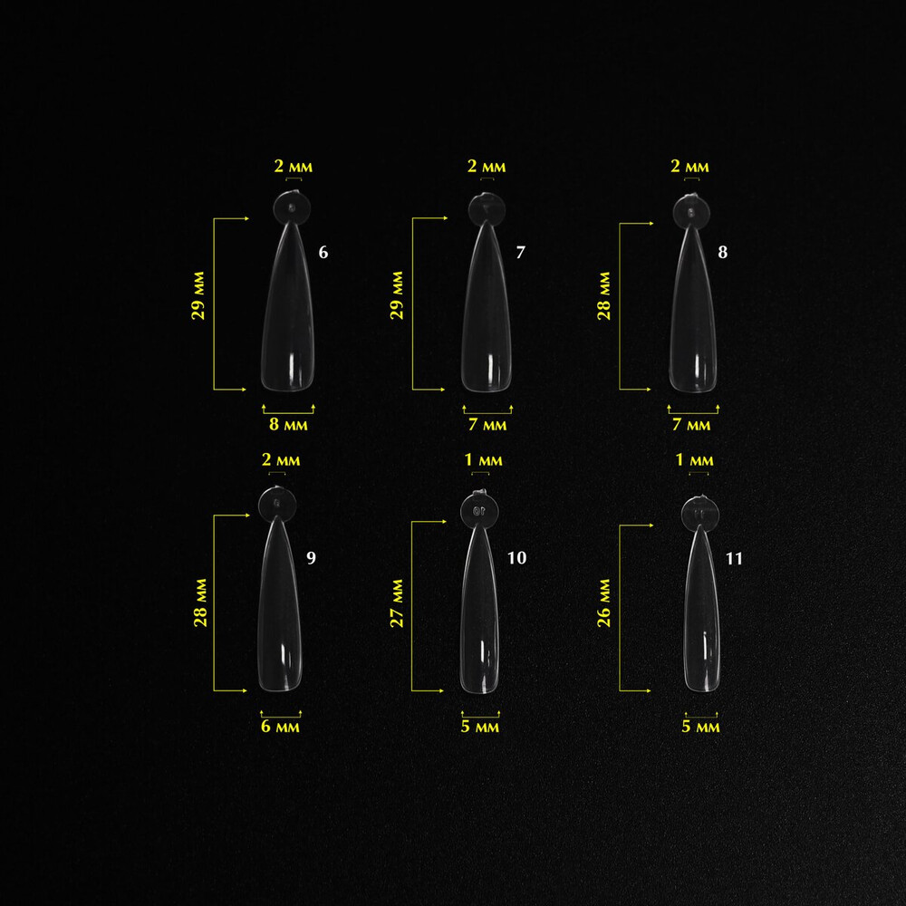 Завужена форма тіпси дозволяє моделювати різні види овальних та мигдальних форм нігтів, а також «салонної балерини». Імітують натуральну нігтьову пластину.