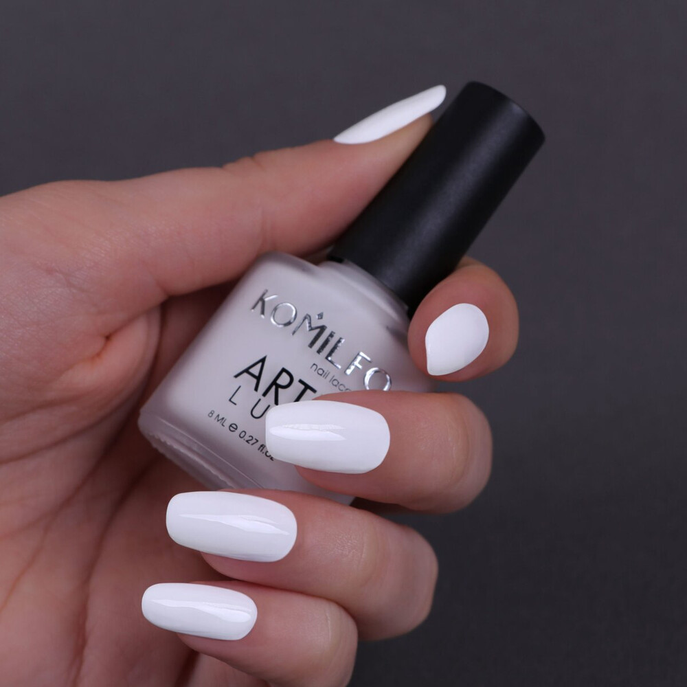 Лак для нігтів Komilfo ArtiLux 001 білий, емаль, 8 мл (з тонким пензлем)