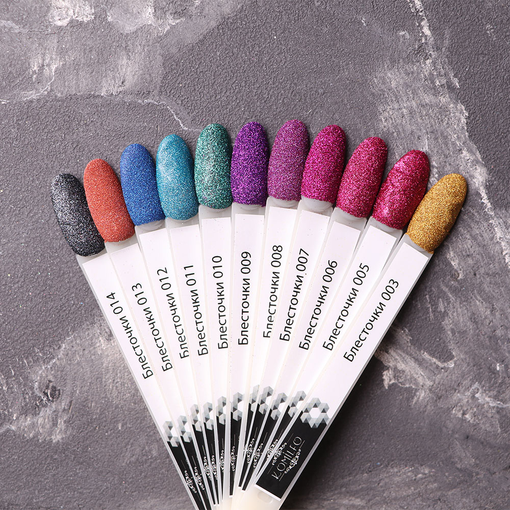 Додайте сяйва своєму манікюру за лічені хвилини! Блискітки Komilfo допоможуть створити як ніжний перелив, так і ефектний гліттерний дизайн. Вони легко наносяться та чудово поєднуються з будь-якими покриттями. Підходять для повного покриття нігтя або створення унікальних акцентів.