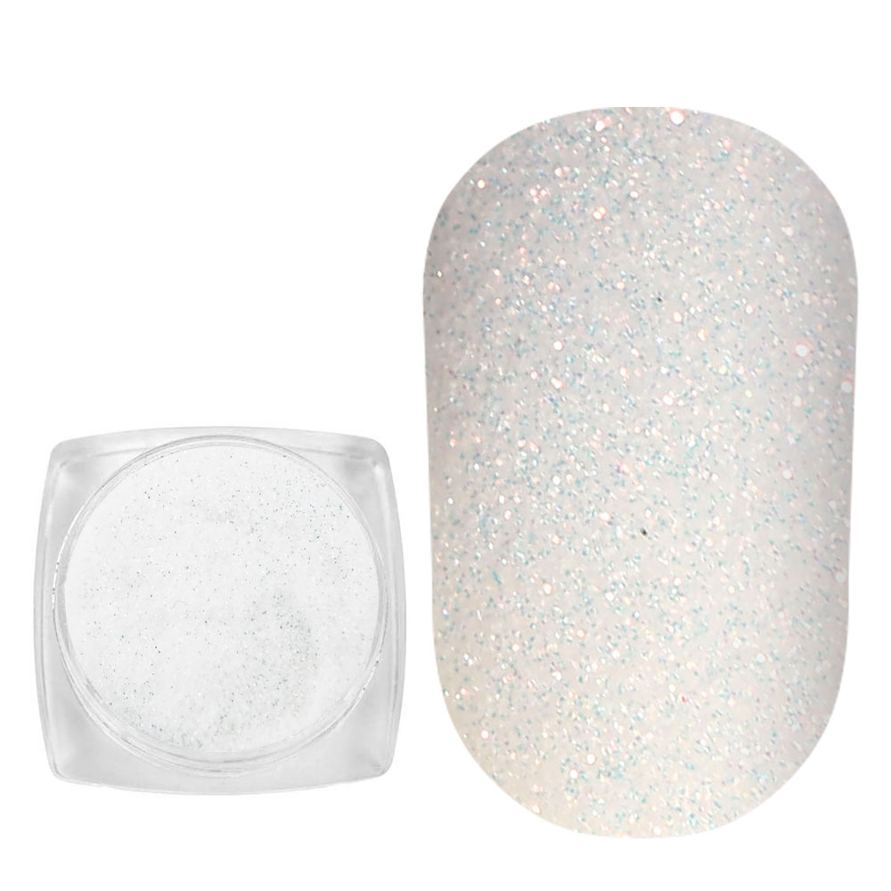 Блискітки Komilfo 028, розмір 0.1 мм білі, червоно-помаранчевий перелив, 2.5 г
