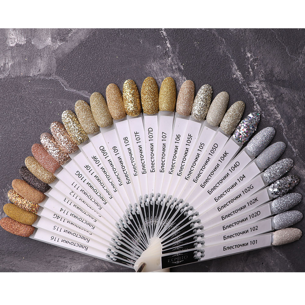 Додайте сяйва своєму манікюру за лічені хвилини! Блискітки Komilfo допоможуть створити як ніжний перелив, так і ефектний гліттерний дизайн. Вони легко наносяться та чудово поєднуються з будь-якими покриттями. Підходять для повного покриття нігтя або створення унікальних акцентів.