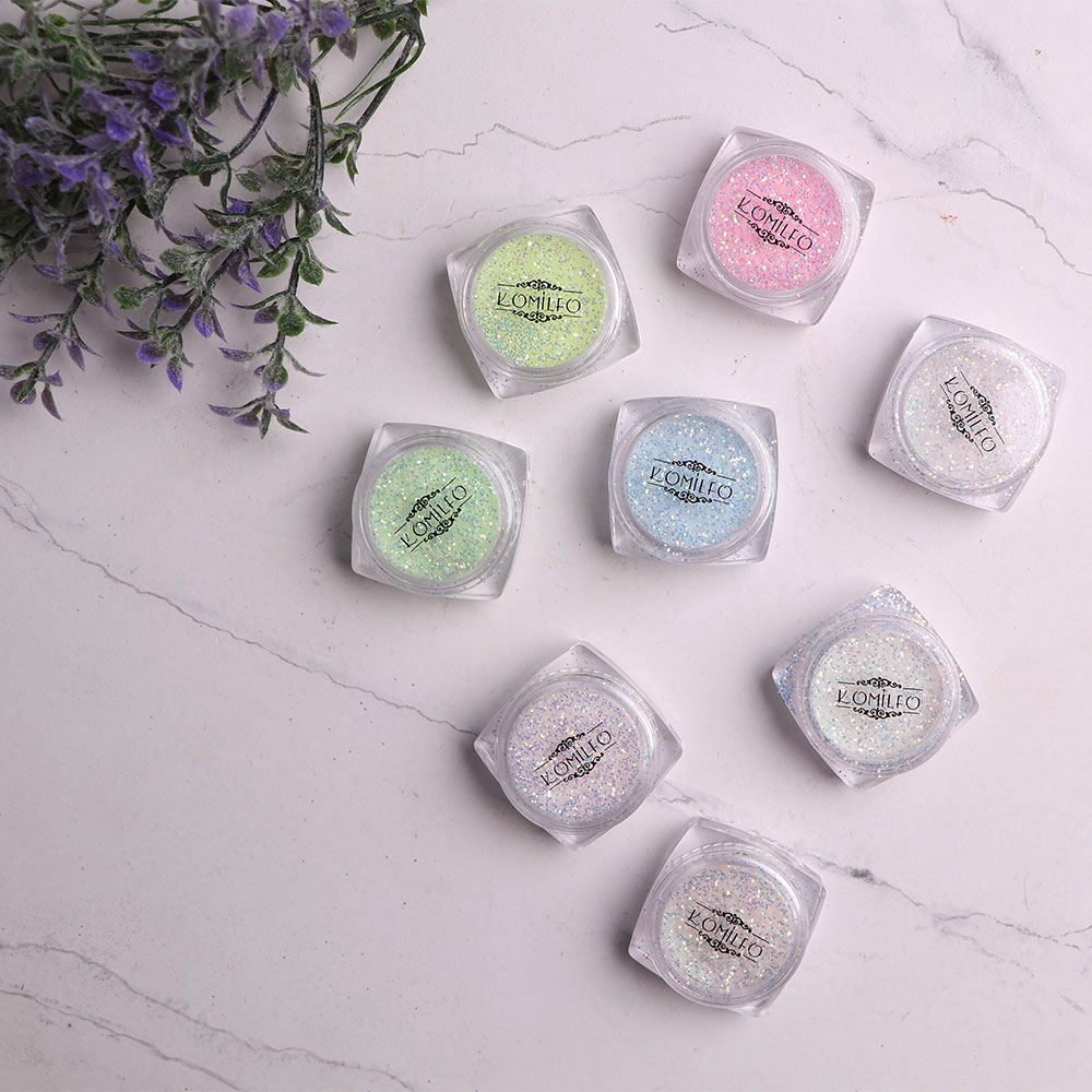 Додайте сяйва своєму манікюру за лічені хвилини! Блискітки Komilfo допоможуть створити як ніжний перелив, так і ефектний гліттерний дизайн. Вони легко наносяться та чудово поєднуються з будь-якими покриттями. Підходять для повного покриття нігтя або створення унікальних акцентів.