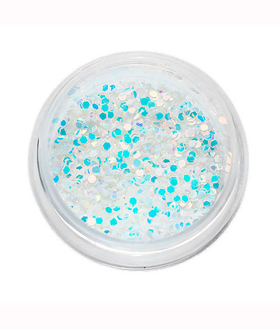 Блискітки для декору Komilfo Disco Design 024 шестикутники, білі, голограма, голубий перелив, 1 г