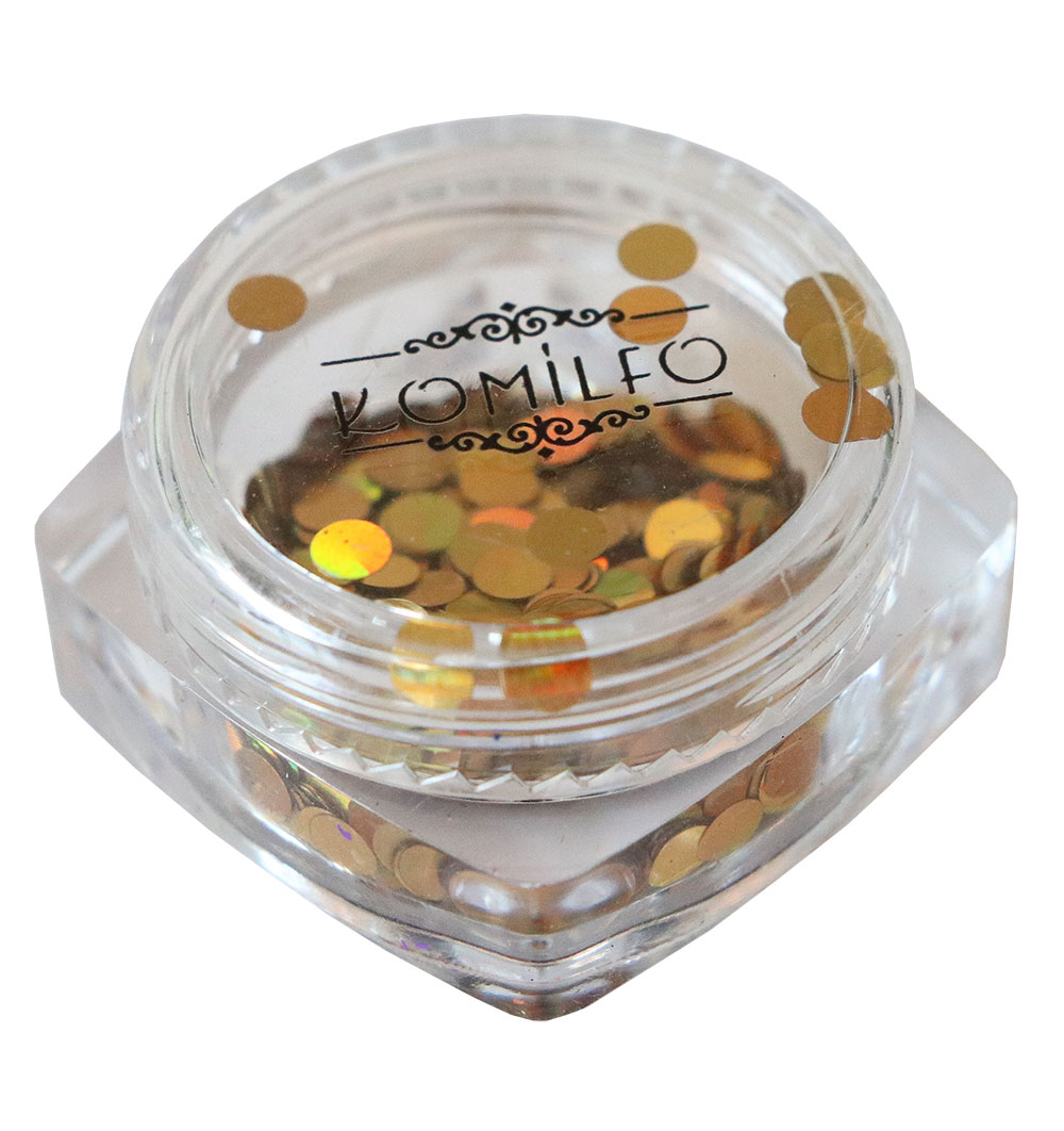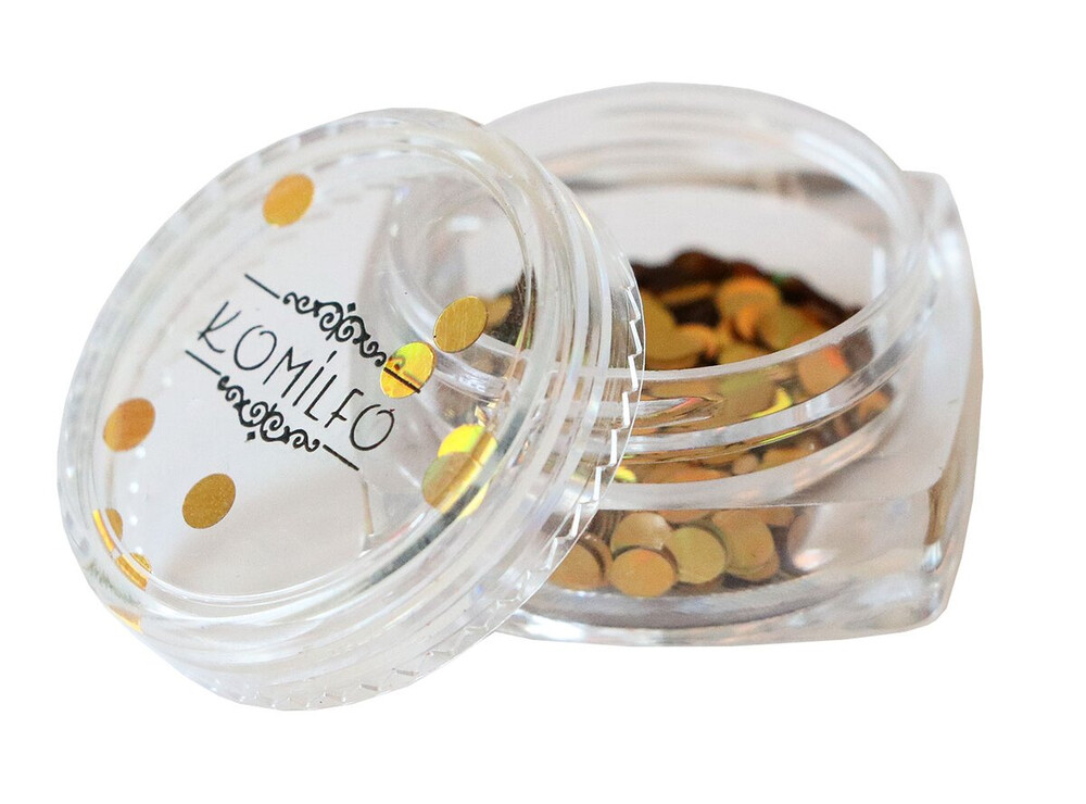 Купити Блискітки для декору Komilfo Disco Design 033 золото, голограма, 3 мм, 1 г, ви зможете у нашому інтернет-магазині limonad з доставкою по всій Україні в тому числі і Київ, Дніпро, Одеса, Харків, Запоріжжя, Одеса, Львів та багато інших населених пунктів.