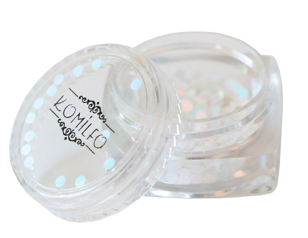 Купити Блискітки для декору Komilfo Disco Design 041 білі, голограма, рожевий перелив, 2 мм, 1 г, ви зможете у нашому інтернет-магазині limonad з доставкою по всій Україні в тому числі і Київ, Дніпро, Одеса, Харків, Запоріжжя, Одеса, Львів та багато інших населених пунктів.