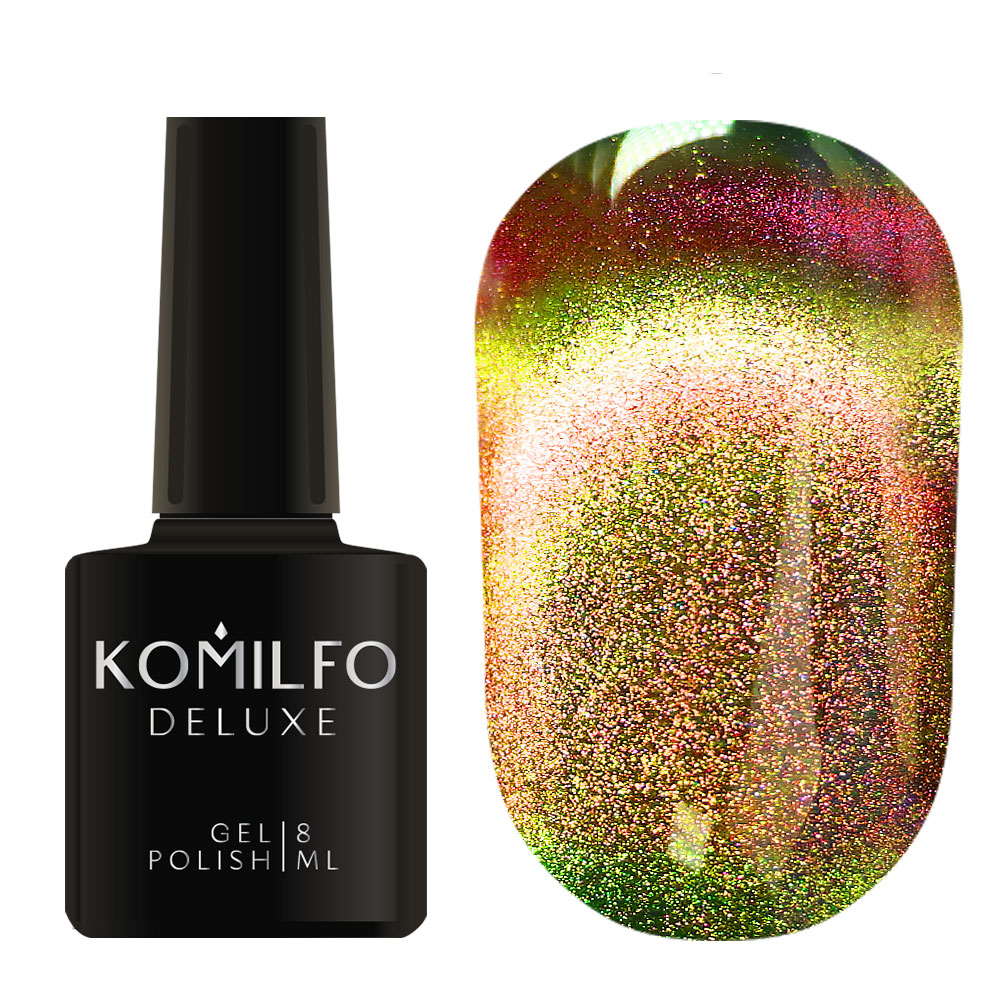 Гель-лак Komilfo 9D Cat’s Eye 002 салатово-золотий, 8 мл