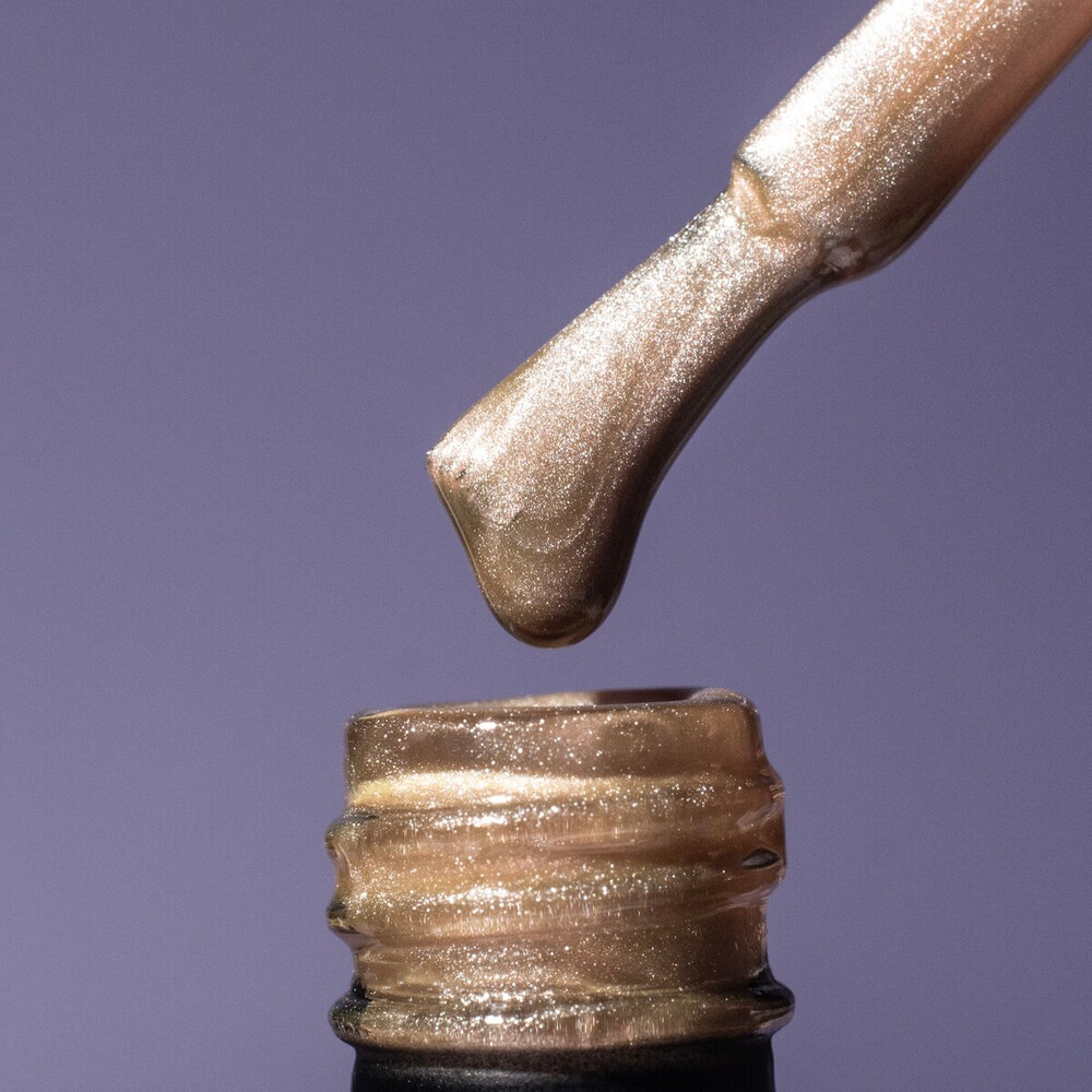 - Нанесіть 2 шари гель-лаку Komilfo Cat’s eye. Перед полімеризацією кожного шару в УФ-лампі підносьте магніт до гель-лаку на відстань 3 мм і тримайте його протягом 7 секунд. Час полімеризації кожного шару в УФ-лампі — 2 хвилини, у LED-лампі — 30 секунд. Для більш вираженого відблиску рекомендується використовувати неодимовий магніт.