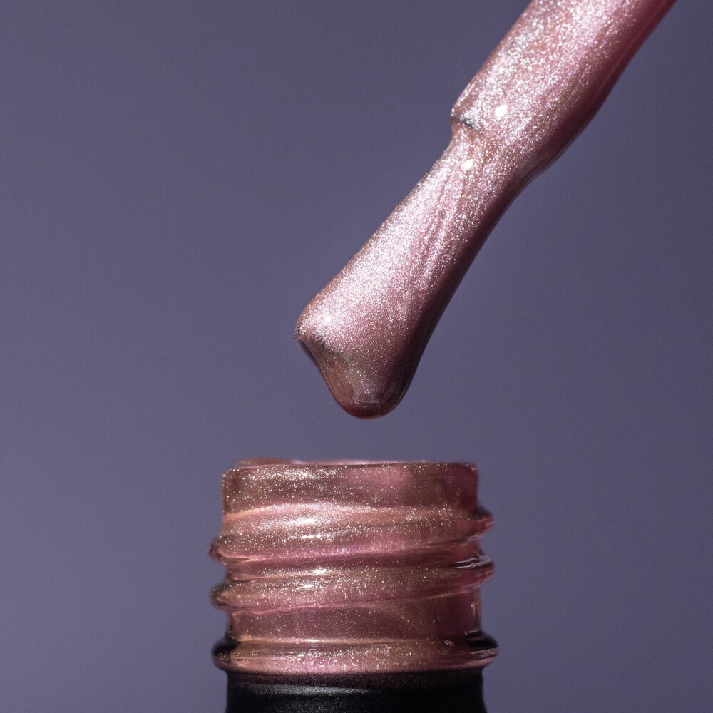 - Нанесіть 2 шари гель-лаку Komilfo Cat’s eye. Перед полімеризацією кожного шару в УФ-лампі підносьте магніт до гель-лаку на відстань 3 мм і тримайте його протягом 7 секунд. Час полімеризації кожного шару в УФ-лампі — 2 хвилини, у LED-лампі — 30 секунд. Для більш вираженого відблиску рекомендується використовувати неодимовий магніт.