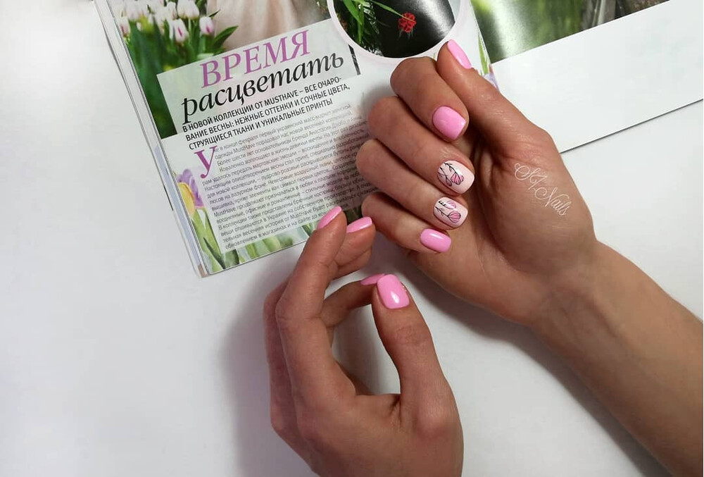 - Проведіть стандартну підготовку нігтя: зніміть попереднє покриття, видаліть кутикулу, забафте поверхню та надайте бажаної форми нігтям. Після цього рекомендовано очистити нігтьову пластину дезінфекційним та знежирювальним засобом. Якщо необхідно, нанесіть ультрабонд – спеціальний безкислотний препарат для кращої взаємодії наступних покриттів з натуральним нігтем.