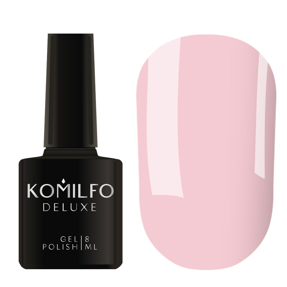 - Komilfo Deluxe Series — це дуже пігментовані гель-лаки, щільно лягають, зносостійкі, зручні у нанесенні, самовирівнюються по нігтьовій пластині, легкорозчинні, ароматизовані та чудово поєднуються з продукцією інших виробників!