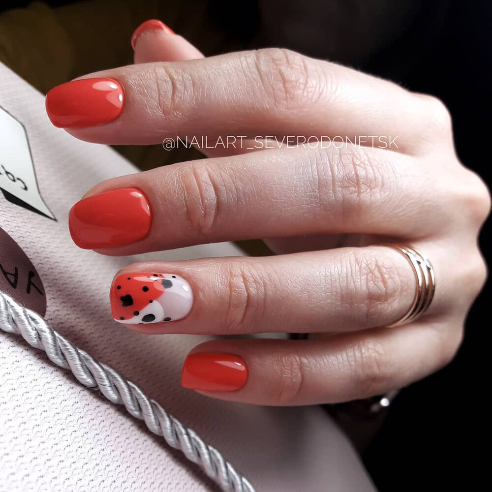- Нанесіть 2 шари кольорового гель-лаку Komilfo. Не забувайте запечатувати кожен шар (включно з базою та топом). Час полімеризації кольорового гель-лаку в LED-лампі — 30 секунд. Для УФ і слабких ламп радимо наносити кольоровий гель-лак тонким шаром через високу пігментацію гель-лаку. Час полімеризації в УФ-лампі — 2 хвилини.