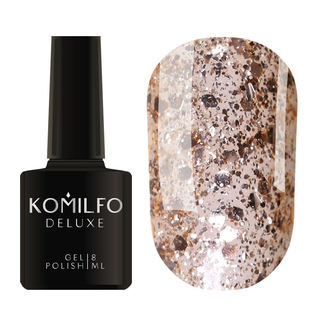 Гель-лак Komilfo DeLuxe Series G001 золотистий, великі блискітки, 8 мл