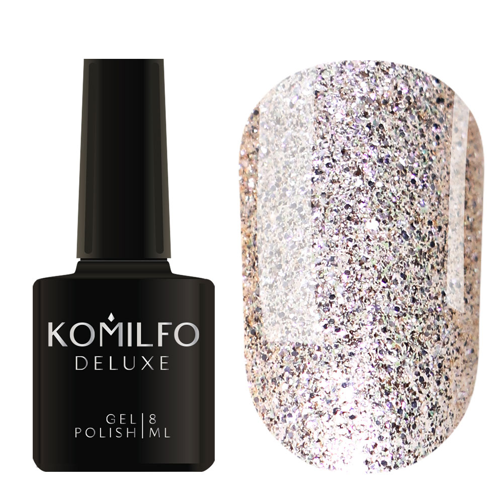 Гель-лак Komilfo DeLuxe Series G005 насичені світло-золотисті блискітки з легким рожевим переливом, 8 мл