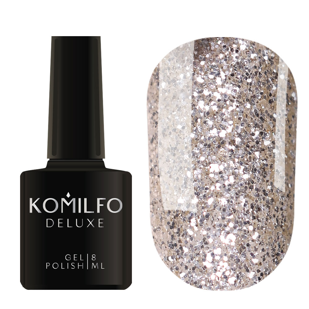 Купити Гель-лак Komilfo DeLuxe Series G006 темно-сріблясті насичені блискітки з золотим відливом, 8 мл, ви зможете у нашому інтернет-магазині limonad з доставкою по всій Україні в тому числі і Київ, Дніпро, Одеса, Харків, Запоріжжя, Одеса, Львів та багато інших населених пунктів.