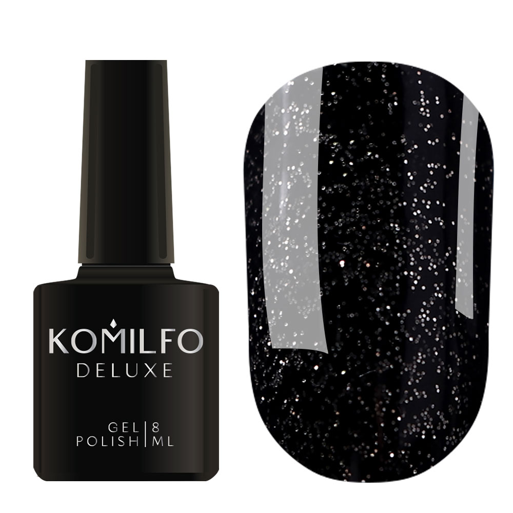 Гель-лак Komilfo DeLuxe Series G023 чорний, сріблястий мікроблиск, 8 мл