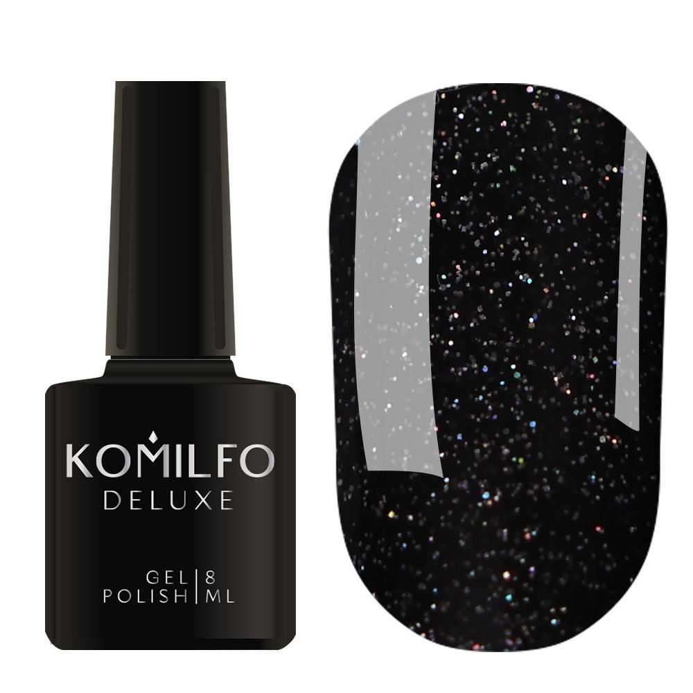 Купити Гель-лак Komilfo DeLuxe Series G027 чорний з голографічними блискітками, 8 мл, ви зможете у нашому інтернет-магазині limonad з доставкою по всій Україні в тому числі і Київ, Дніпро, Одеса, Харків, Запоріжжя, Одеса, Львів та багато інших населених пунктів.