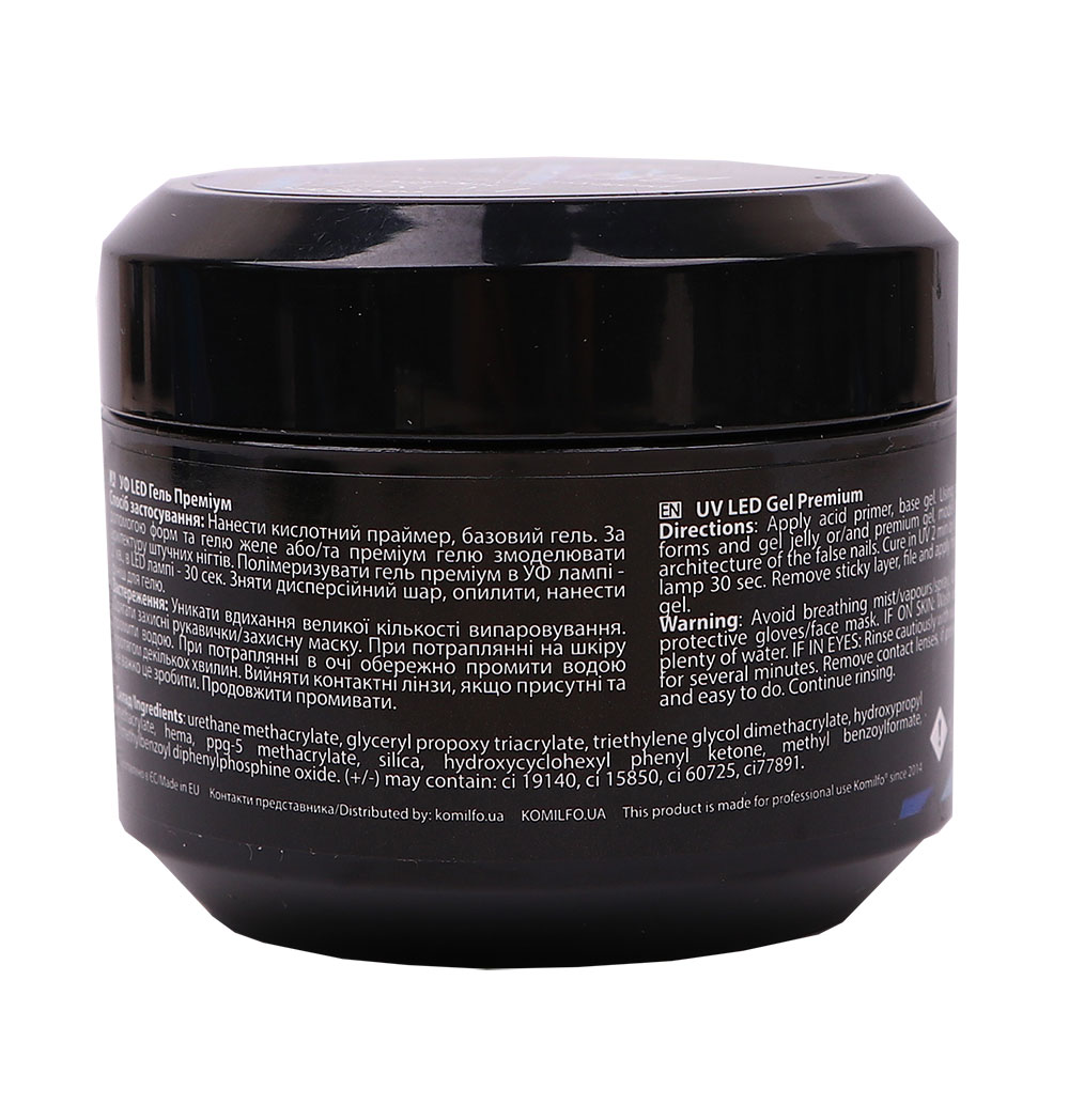 - Komilfo Gel Premium – універсальний гель для нарощування середньої густини преміальної якості.