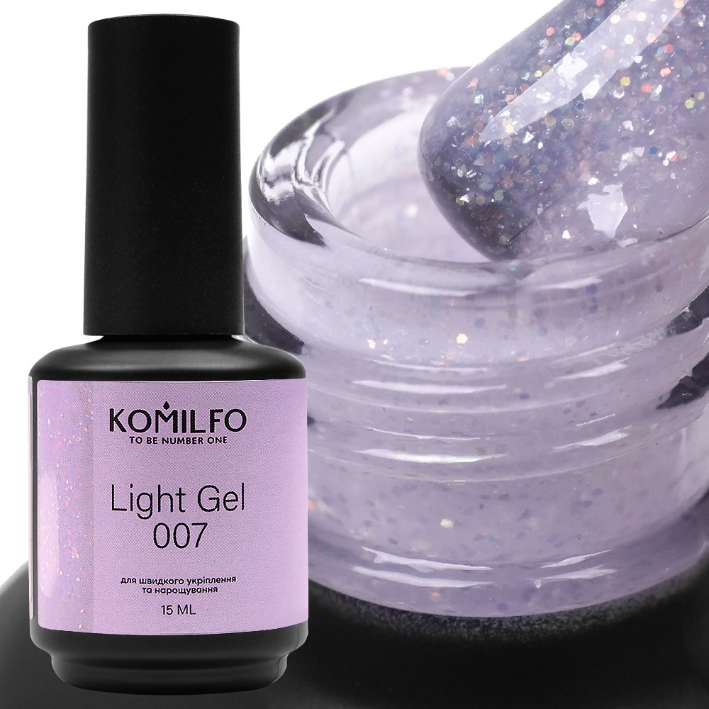 Купити Рідкий гель для нарощування з блискітками Komilfo Light Gel 007, 15 мл, ви зможете у нашому інтернет-магазині limonad з доставкою по всій Україні в тому числі і Київ, Дніпро, Одеса, Харків, Запоріжжя, Одеса, Львів та багато інших населених пунктів.