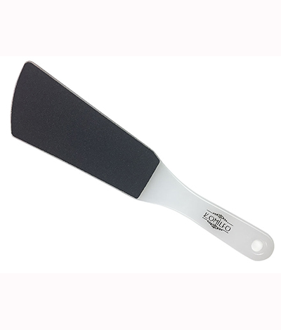 - Для більшої зручності при педикюрі тертка для ніг Komilfo C037 має прямокутну вигнуту форму та зручну міцну ручку.