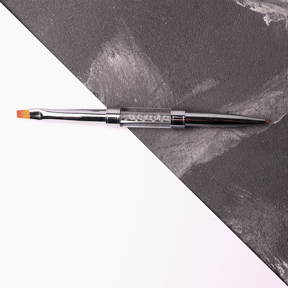 - З одного боку прямокутна форма, яка дозволяє набирати та викладати потрібну кількість матеріалу на ніготь, а також наносити його тонким шаром.