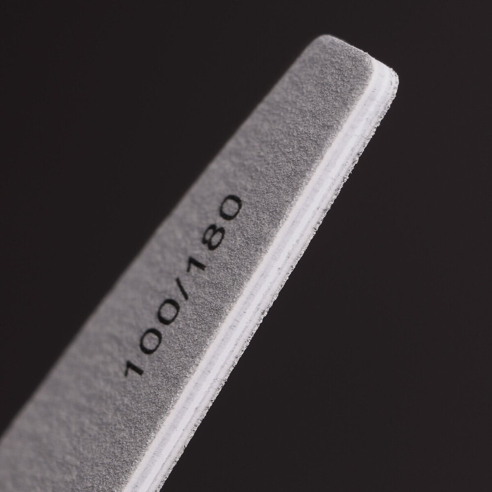 - Пилка Komilfo 100/180 гріт підійде для натуральних і нарощених нігтів.