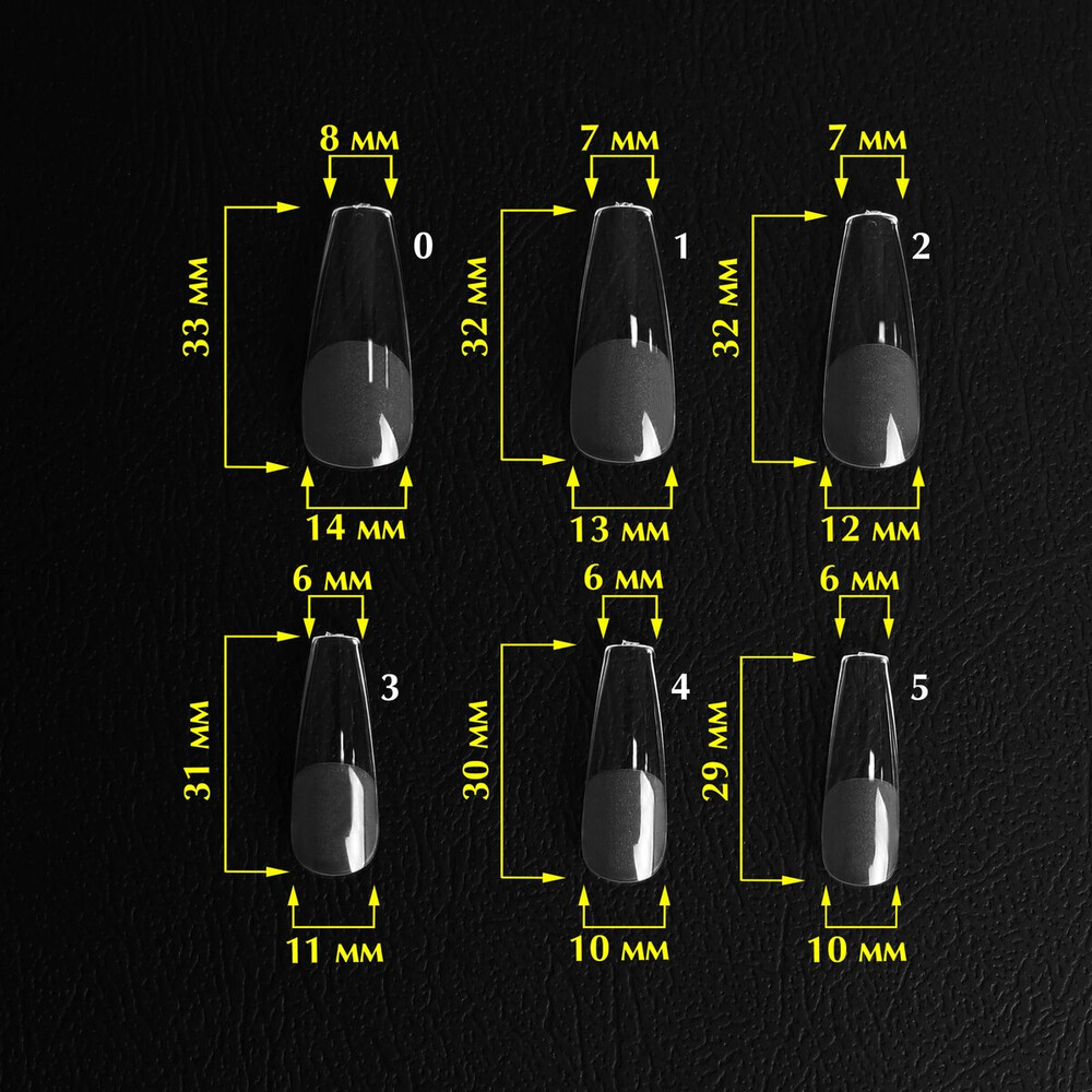 Матеріал форм для нігтів – PP (поліпропілен), матеріал кінчиків нігтів – PMMA (поліметилметакрилат).