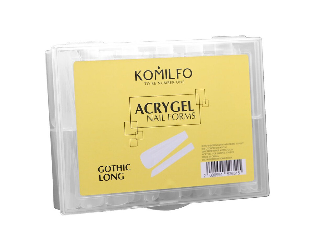 Купити Верхні форми Komilfo Top Nail Forms Long Gothic довгий готичний миндаль, 130 шт, ви зможете у нашому інтернет-магазині limonad з доставкою по всій Україні в тому числі і Київ, Дніпро, Одеса, Харків, Запоріжжя, Одеса, Львів та багато інших населених пунктів.
